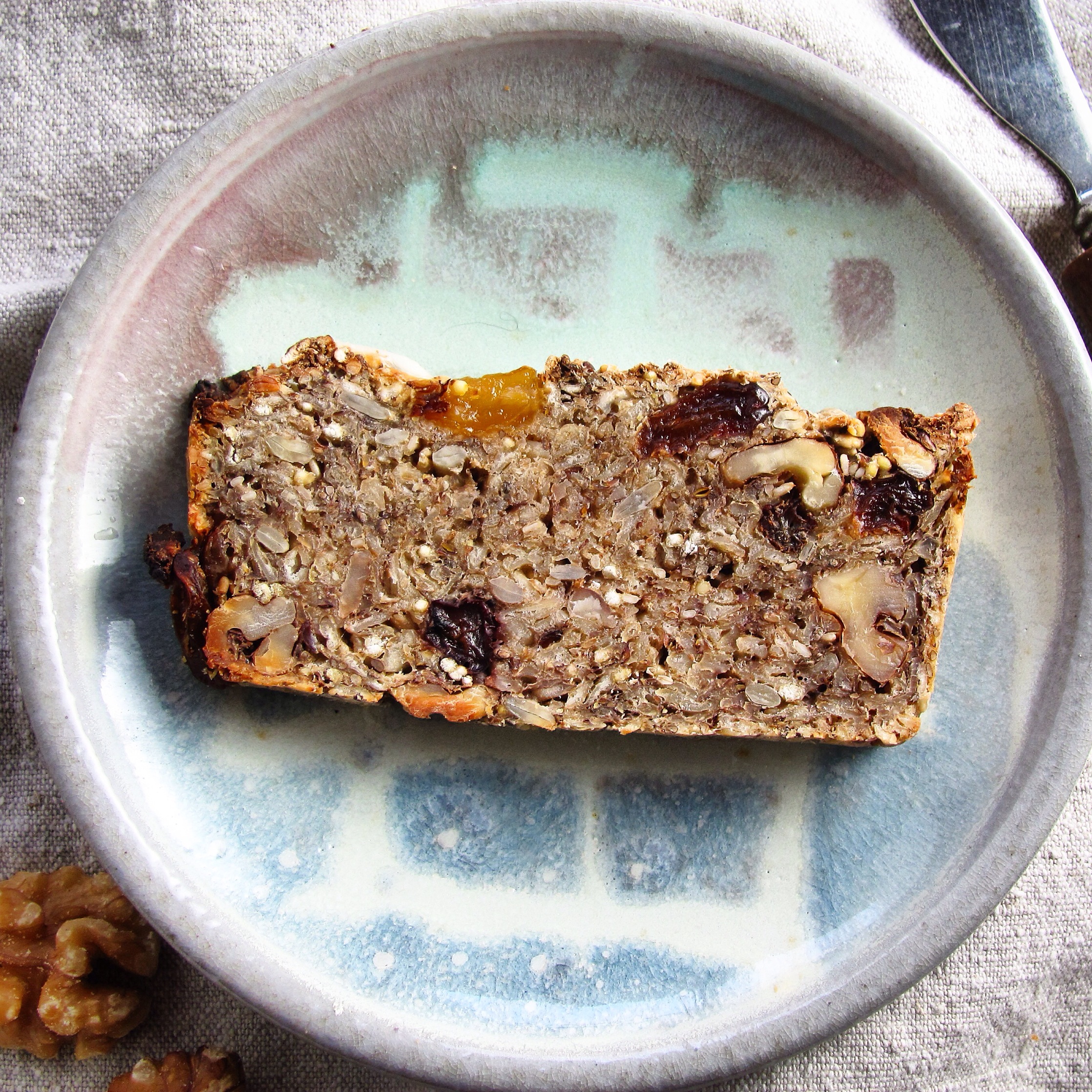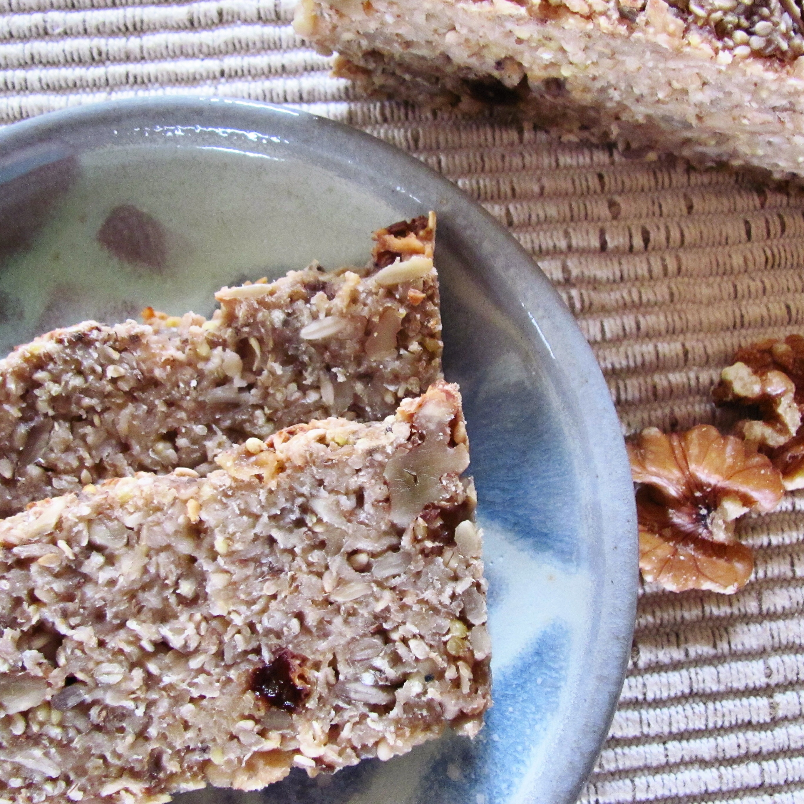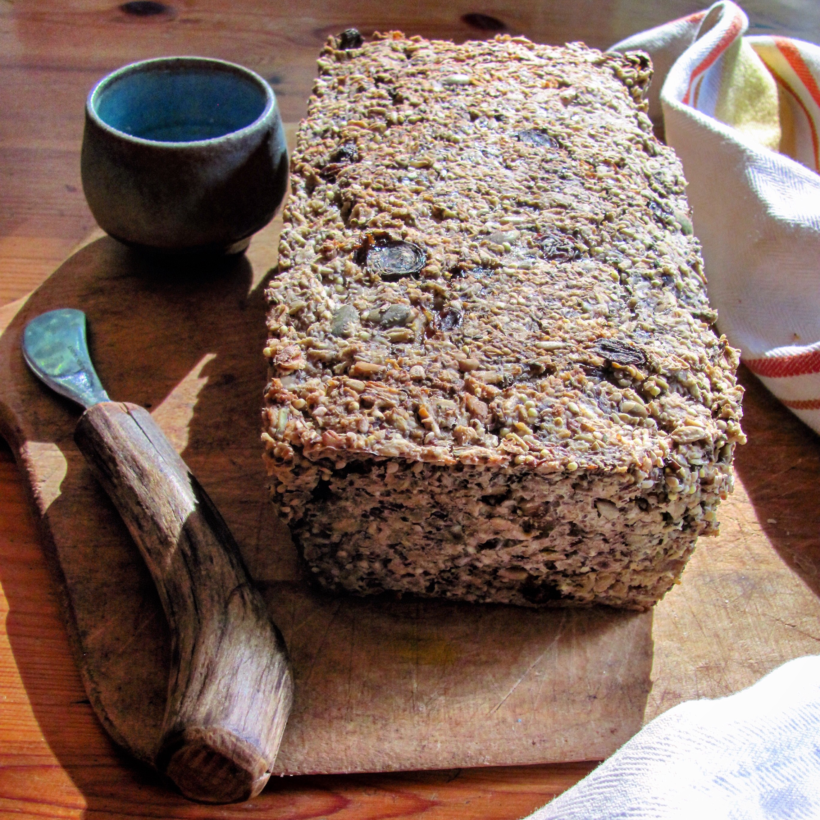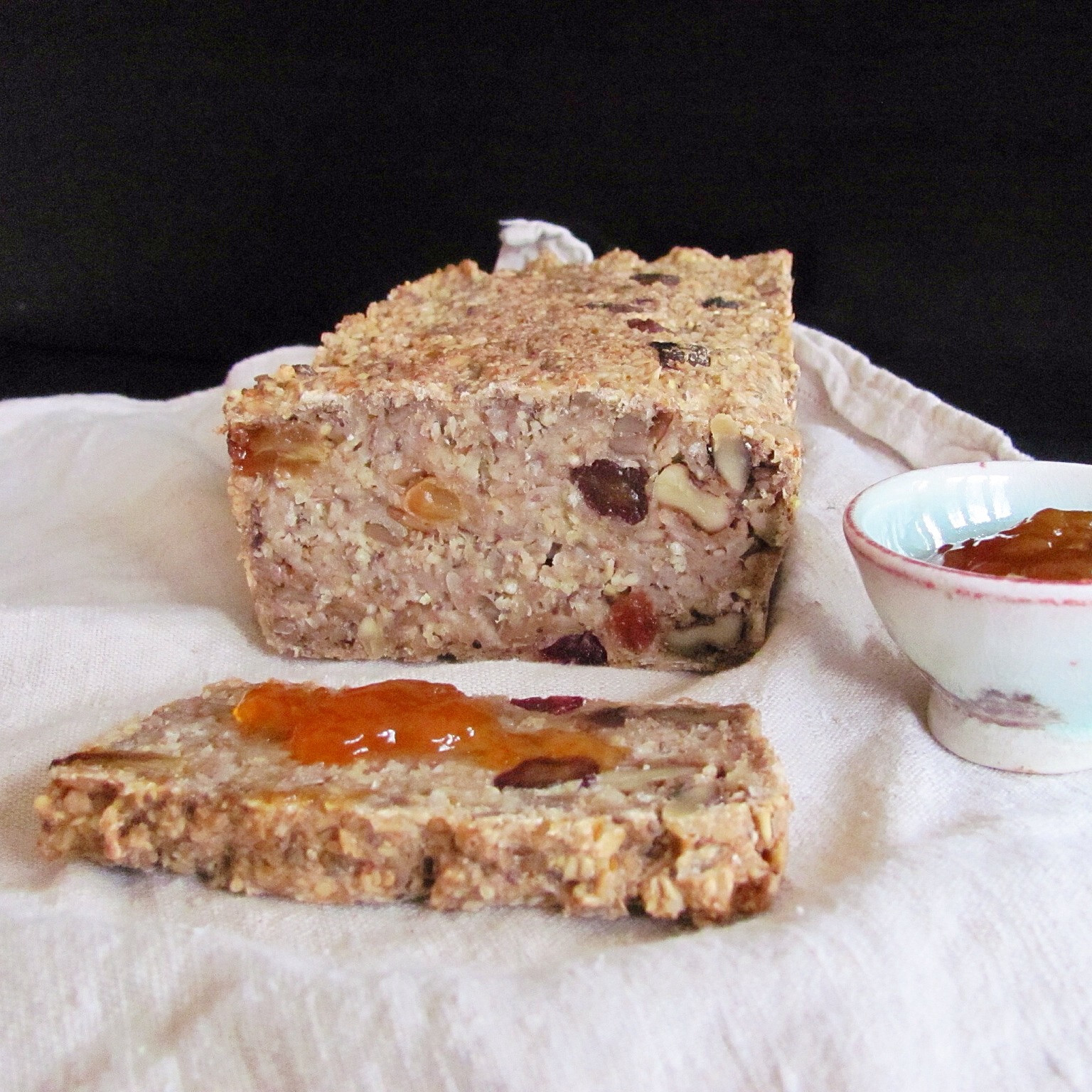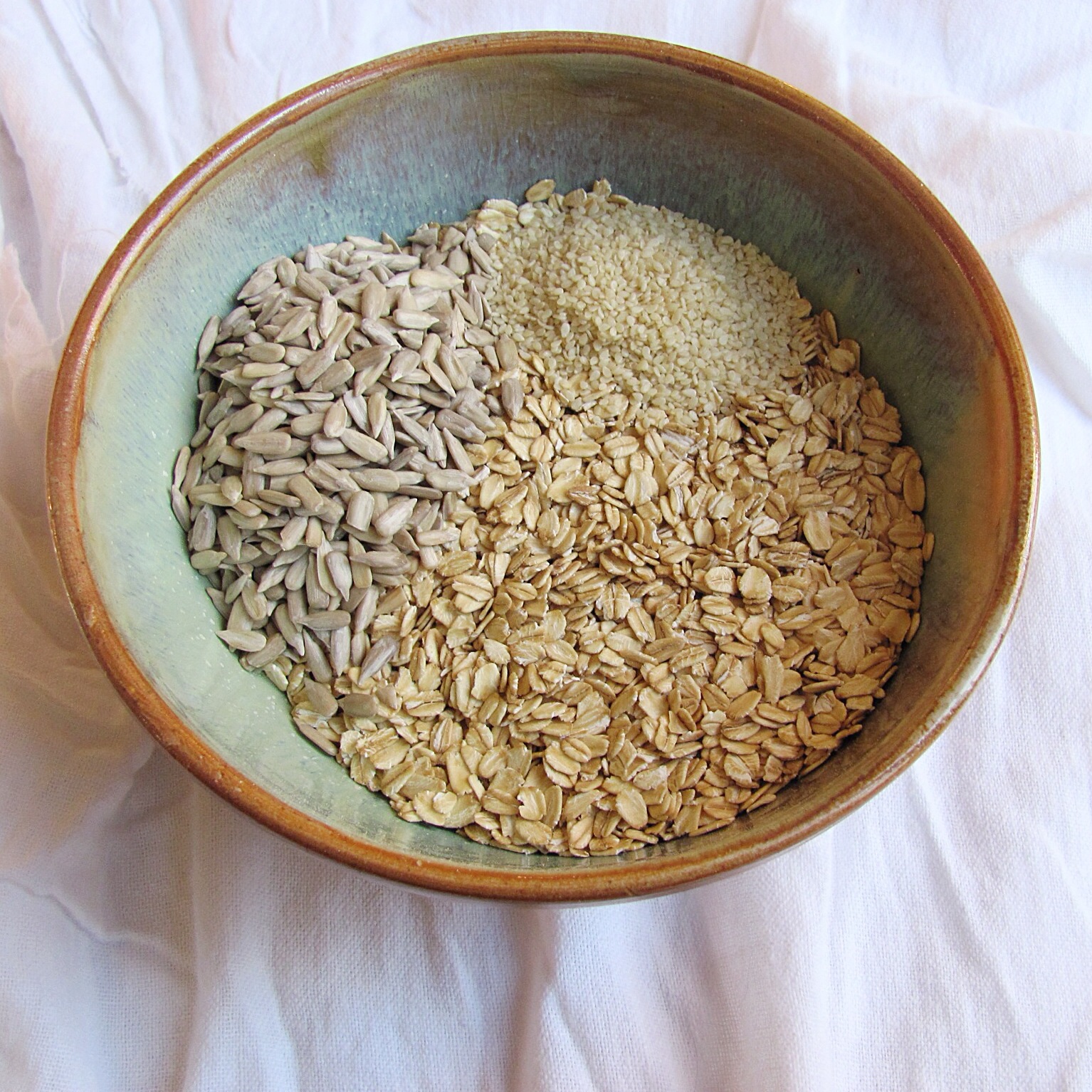 I encourage you to practice mindfulness when you bake and eat this bread. And I will point out that it is vegan and gluten free if made with gf oats. Unlike other bread doughs, this one is delicious raw, in which case it is called Overnight Oats with Grains, Seeds and Dried Fruit.