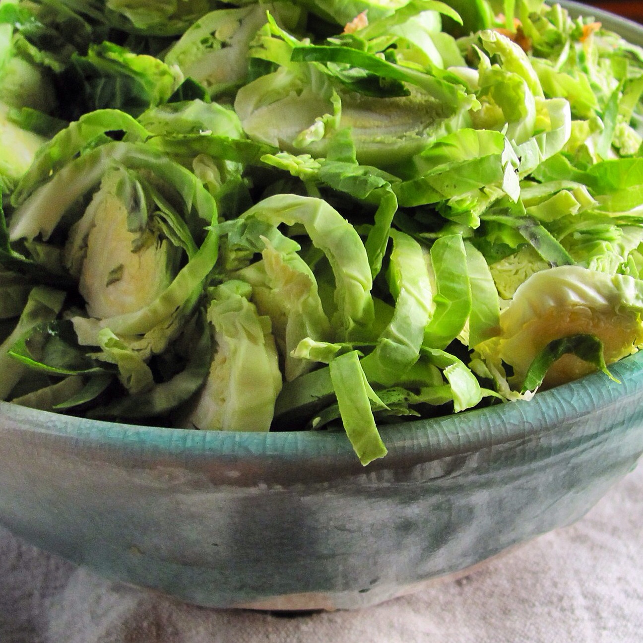 Grate the sweet potato and start sautéing it in the oil over high heat in a big ovenproof pot. While that gets going, switch to the slicing blade on the machine and slice up all the brussels sprouts. I think this is so fun! While you are doing this, you can reflect on just how weird I am.