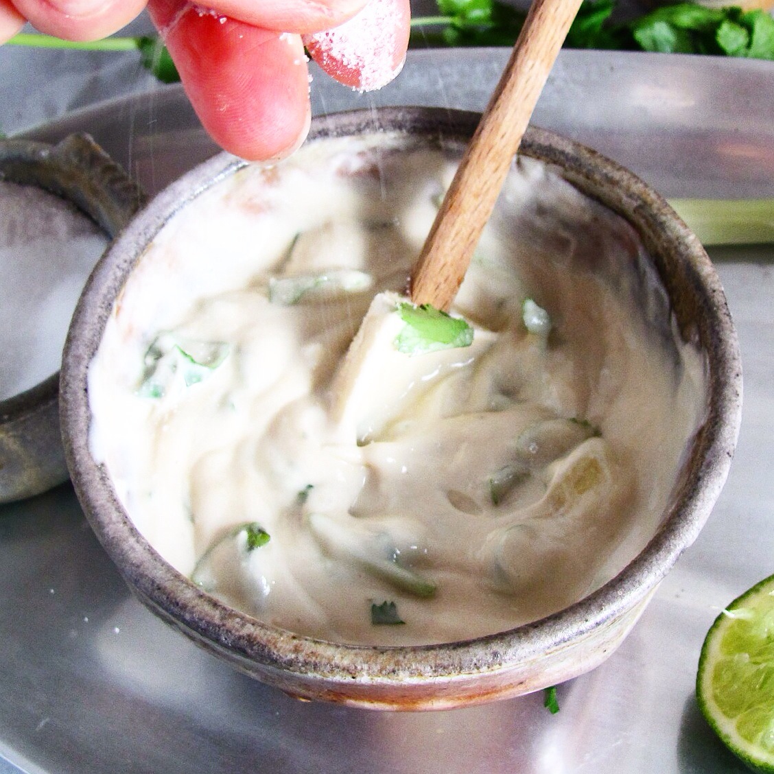 Whisk all the ingredients to combine. Refrigerate for at least an hour before serving. Garnish with additional cilantro and scallions.