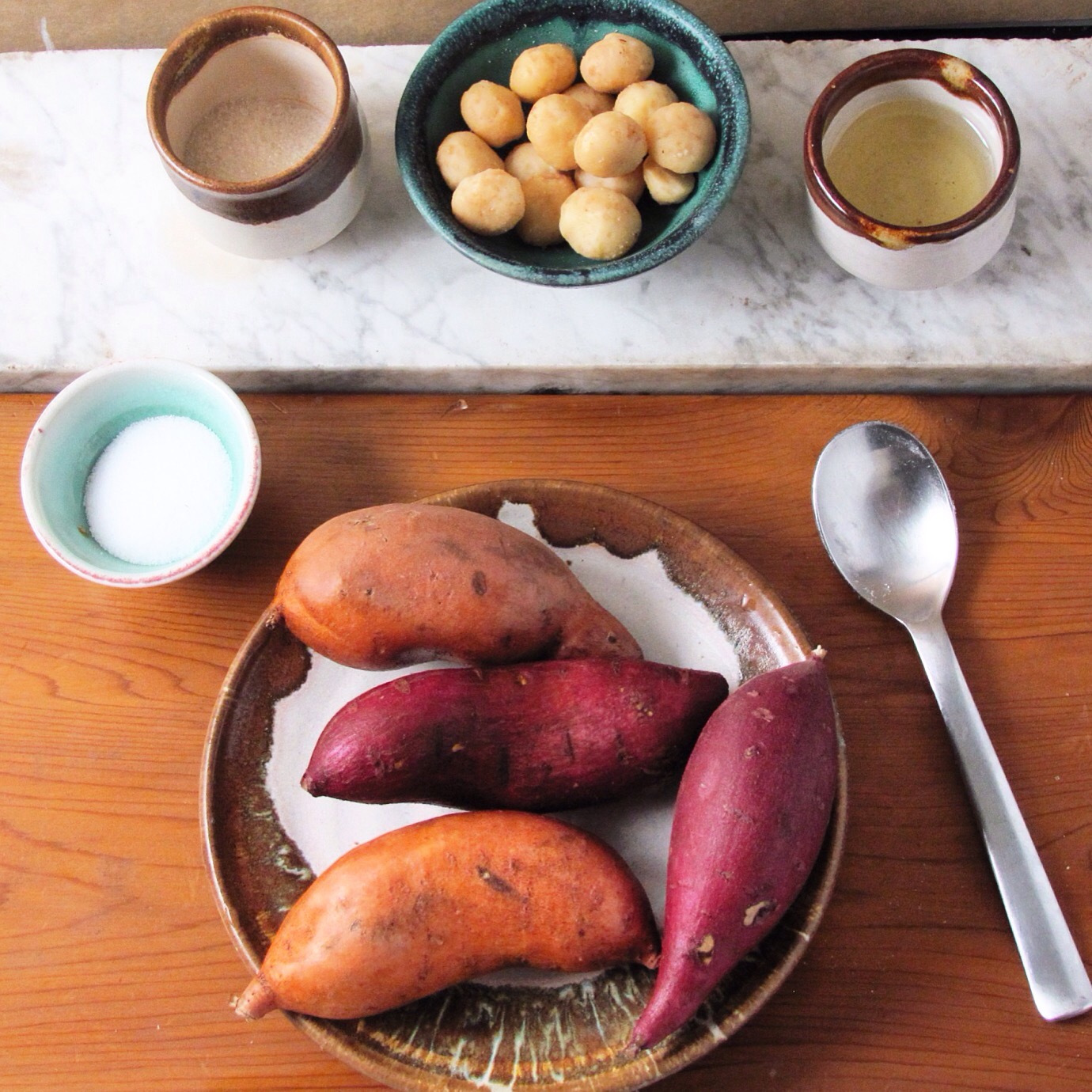 If you can’t get baby sweet potatoes, make this with the smallest ones you can find; you may need to adjust the cooking time.