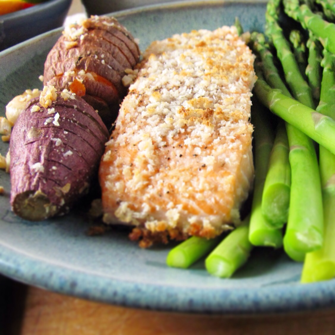 Hasselback Potatoes originated in Stockholm, Sweden in the 1700’s at a restaurant called Hasselbacken. The original Hasselback was a white potato, cut into slices, but not all the way, so the cuts fanned out a bit and gave a novel appearance and some contrasting texture. I am by no means the first person to do them with sweet potatoes, but I haven’t found anyone so far who has created exactly my version.