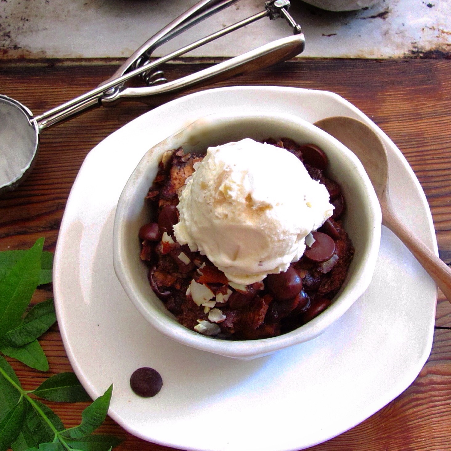Celestial Double Chocolate Bread Pudding with Almonds