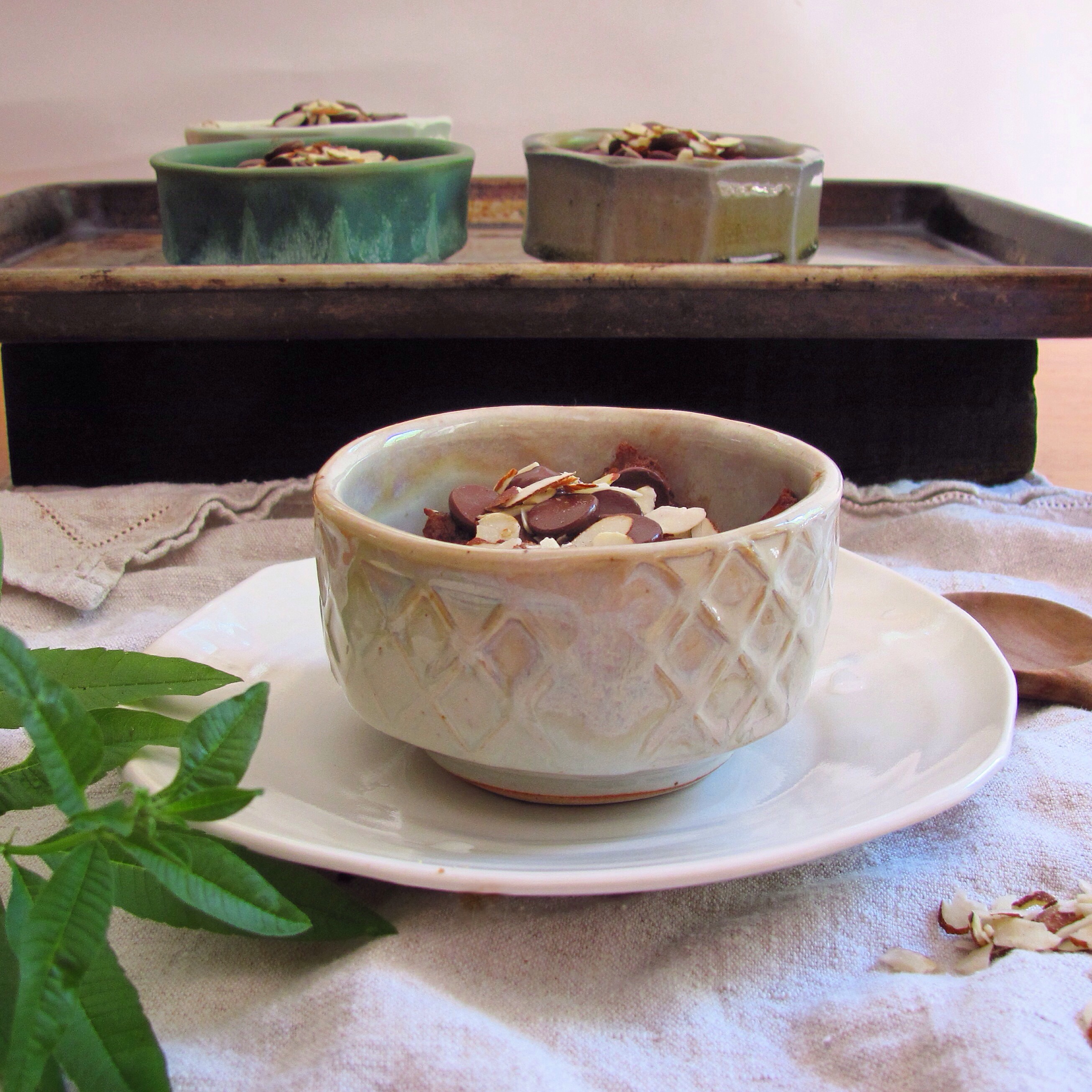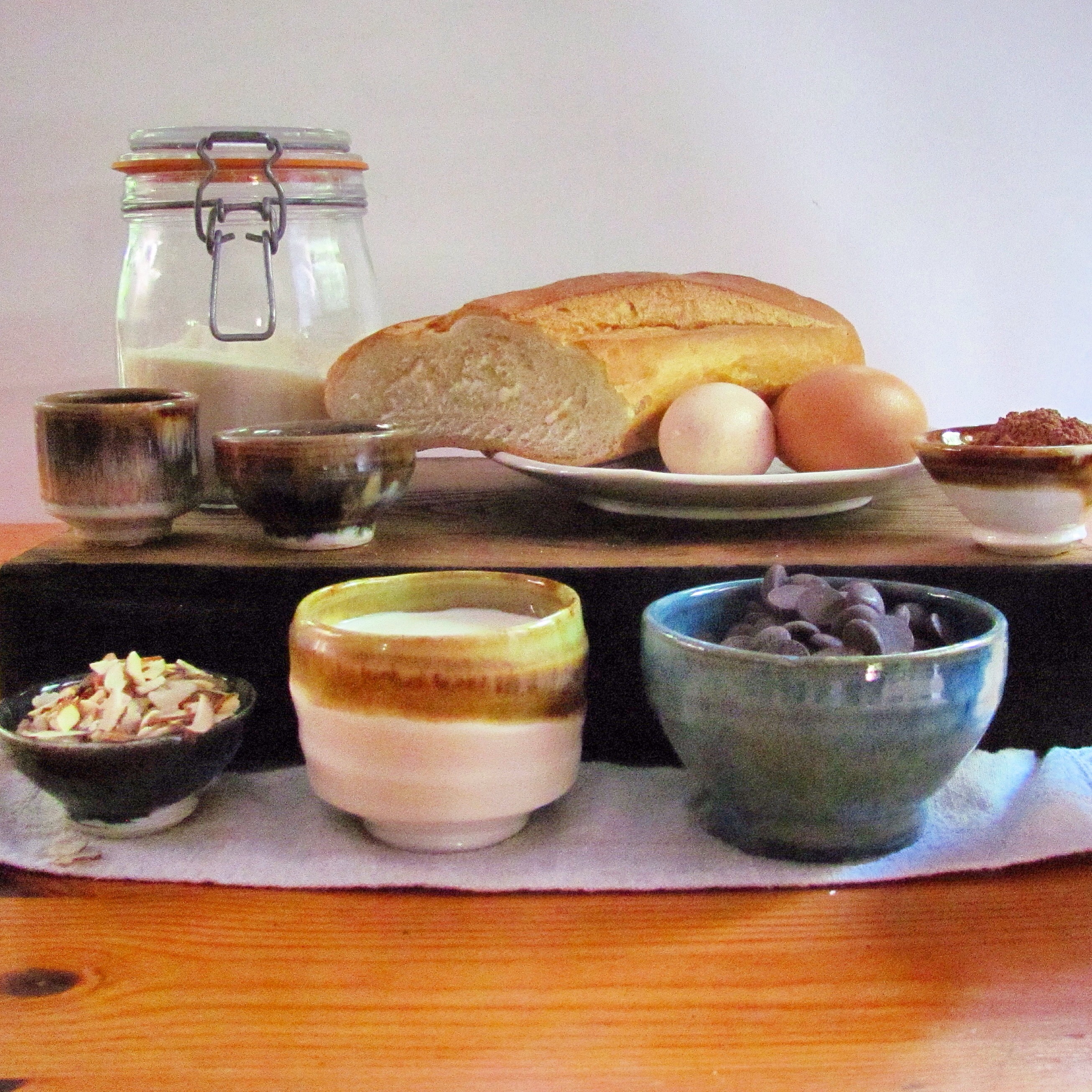 I hope you readers, including my astrophysics-minded loved ones understand that I respect and admire explorations of “the really, really big picture.” But I would much rather think about chocolate. And porcelain. And what do do with that leftover bread that Meg bought that wasn’t very good in the first place. And what newly fired bowls to use. It’s true. My reality is, indeed, tiny. But somebody has to make dessert while everyone else is talking about carbon vs silicone based life forms.