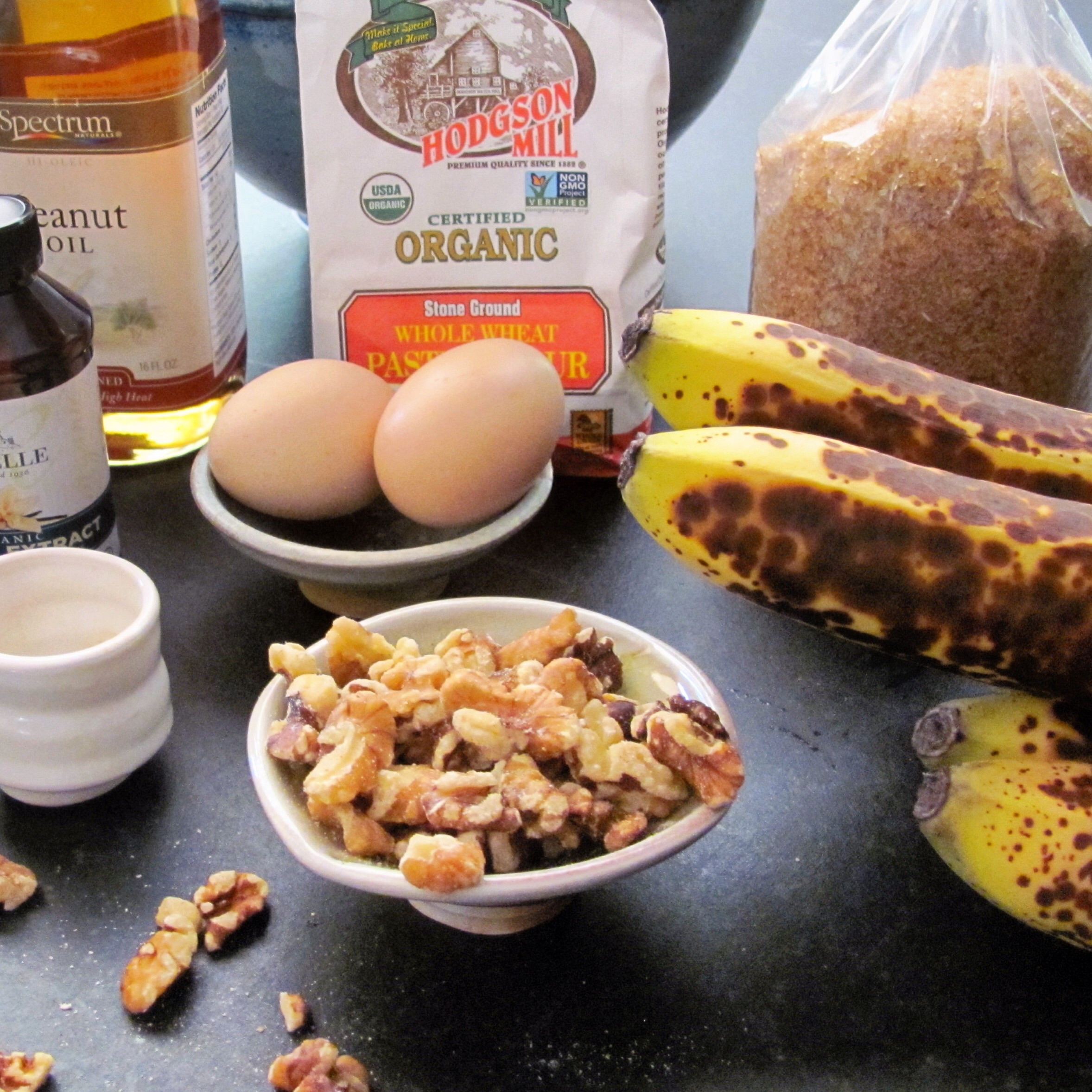 I believe that walnuts belong in banana bread. But if you don’t like walnuts in yours, leave them out or use your nut of choice.