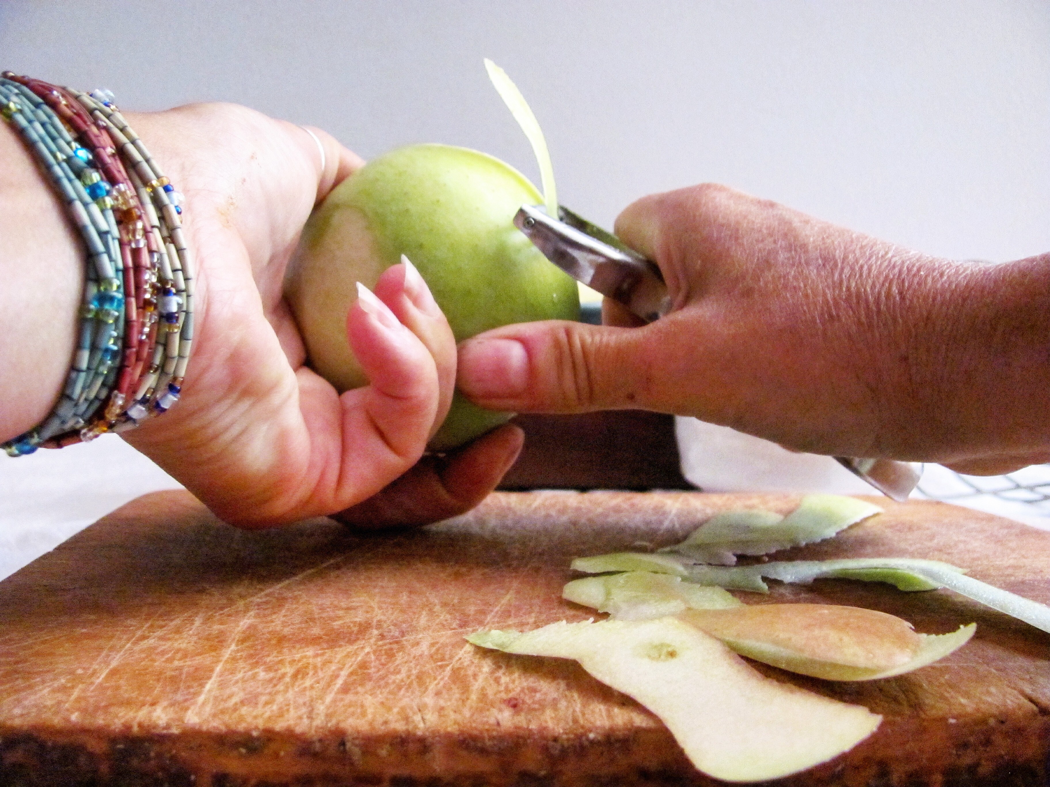 *You want a variety that is good for baking and will also hold its shape. Jonagolds are perfect, as are Golden Delicious, which you see here.