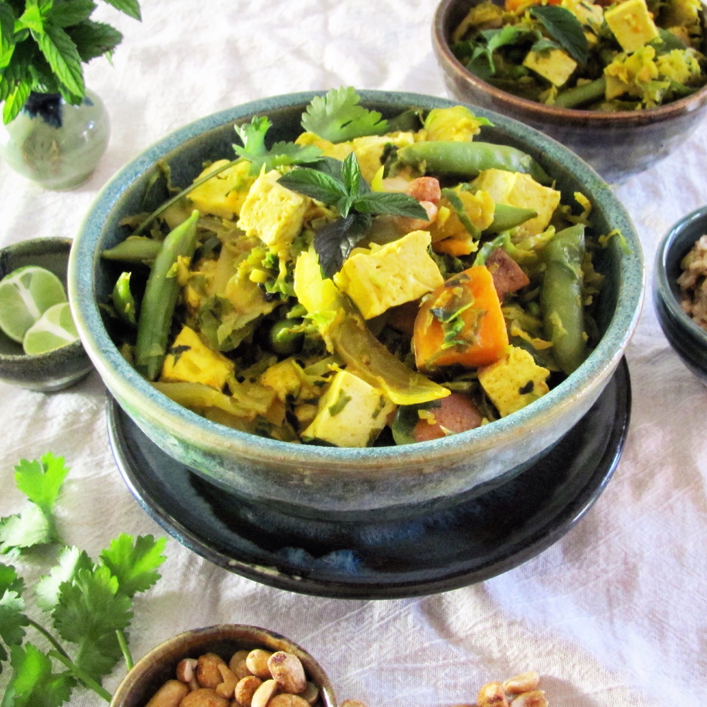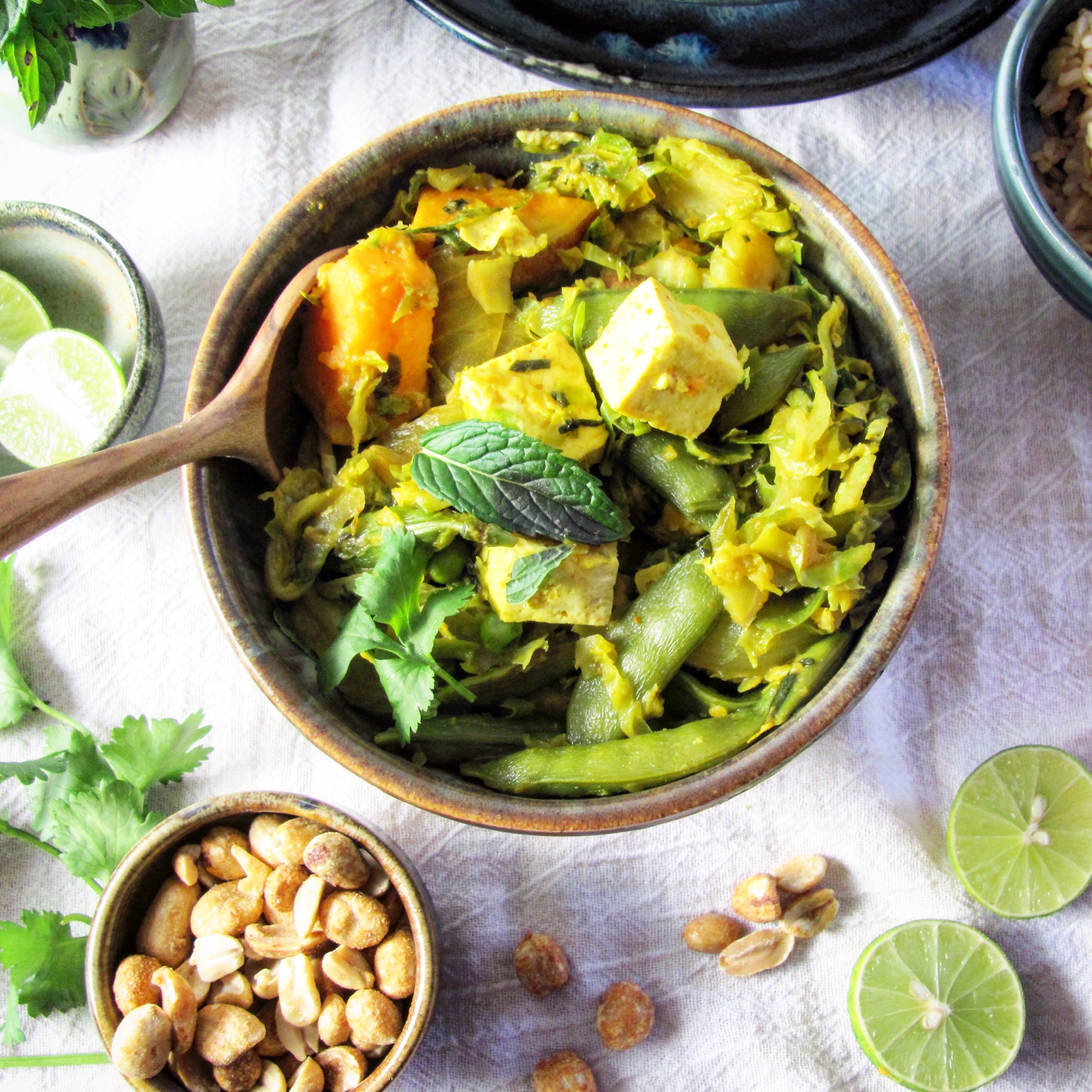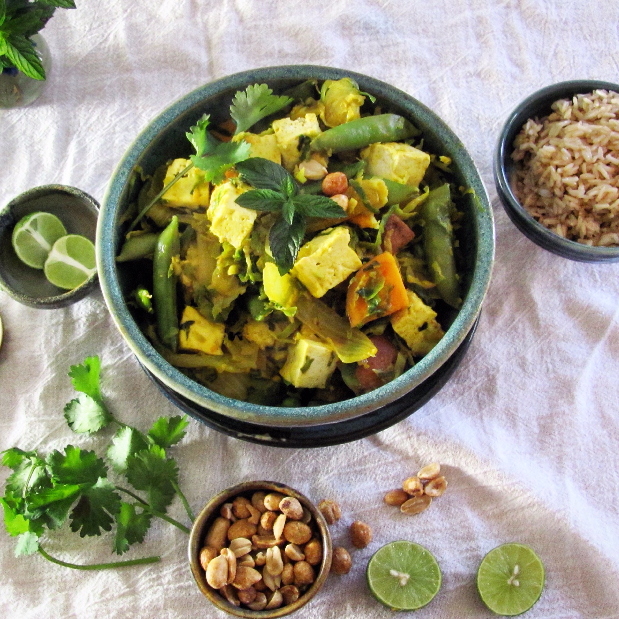 1. What a lovely and healthy meal! I grew up eating lots of tofu and I love Thai flavour that you have incorporated in this comforting and delicious dish. Once again, I LOVE all those beautiful bowls you use, Deb.