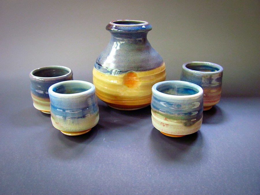 Wood/salt fired porcelain sake set