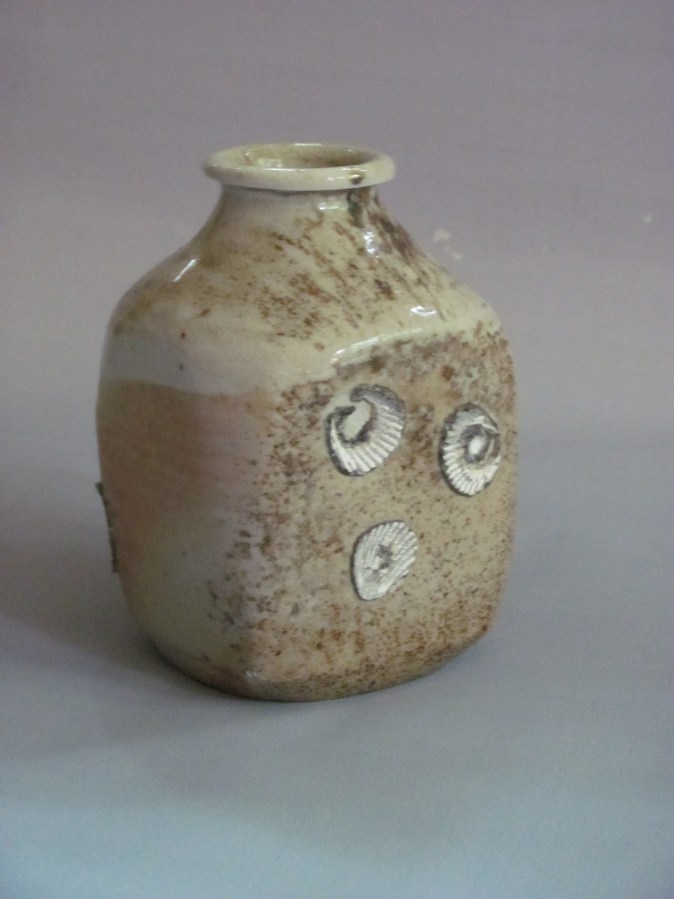 Wood fired stoneware, shino, fired on seashells